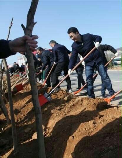 在预先设置好的植树地点,参加义务植树活动的党员干部们分工明确、配合密切,大家有条不紊地挥锹挖坑、放苗培土、围堰浇水,现场一片热火朝天的劳动景象。卢希望、李建超等一边挥锹培土,一边叮嘱林业部门的同志要加强苗木的后期抚育管护,确保栽一棵活一棵、种一片绿一片。参加义务植树活动的其他区领导也干劲十足,并不时与身边的党员干部交流做好春季植树造林工作的意见和建议。