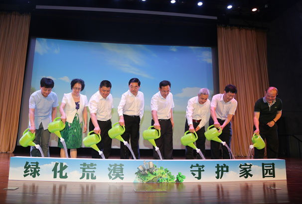 2015年6月17日,纪念第21个世界防治荒漠化与干旱日宣传活动在京举行,与会嘉宾浇灌象征绿色希望的小树共同启动主题宣传活动。