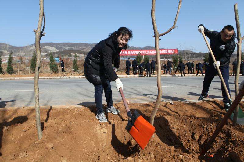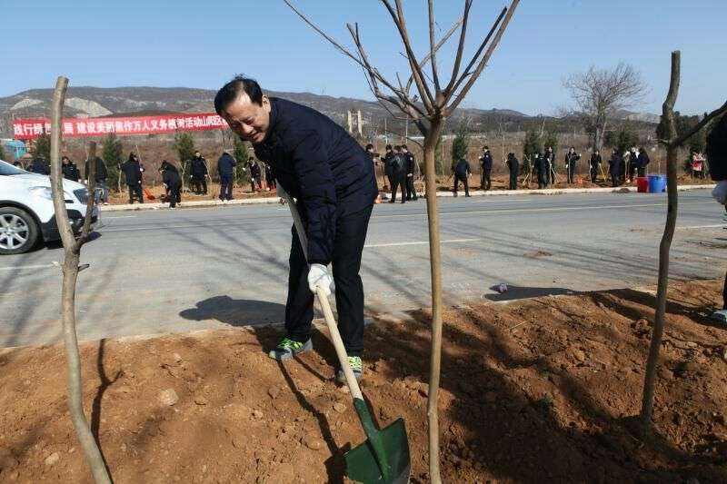 山阳区积极动员、周密部署,组织该区50余个区直单位、近千名党员干部来到南山路卢亮沟段,开展春季义务植树活动,共同为山阳大地栽种绿色希望。