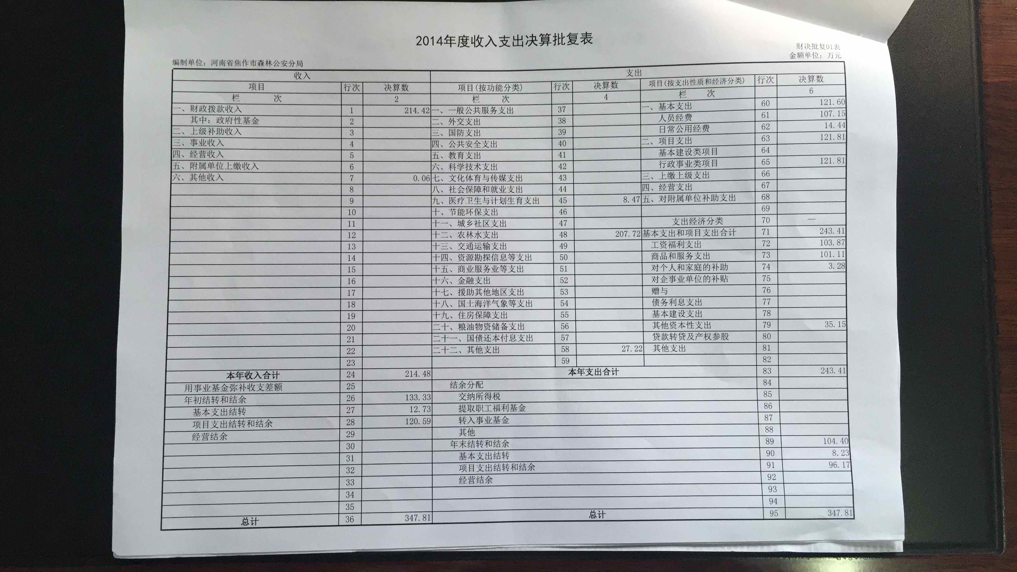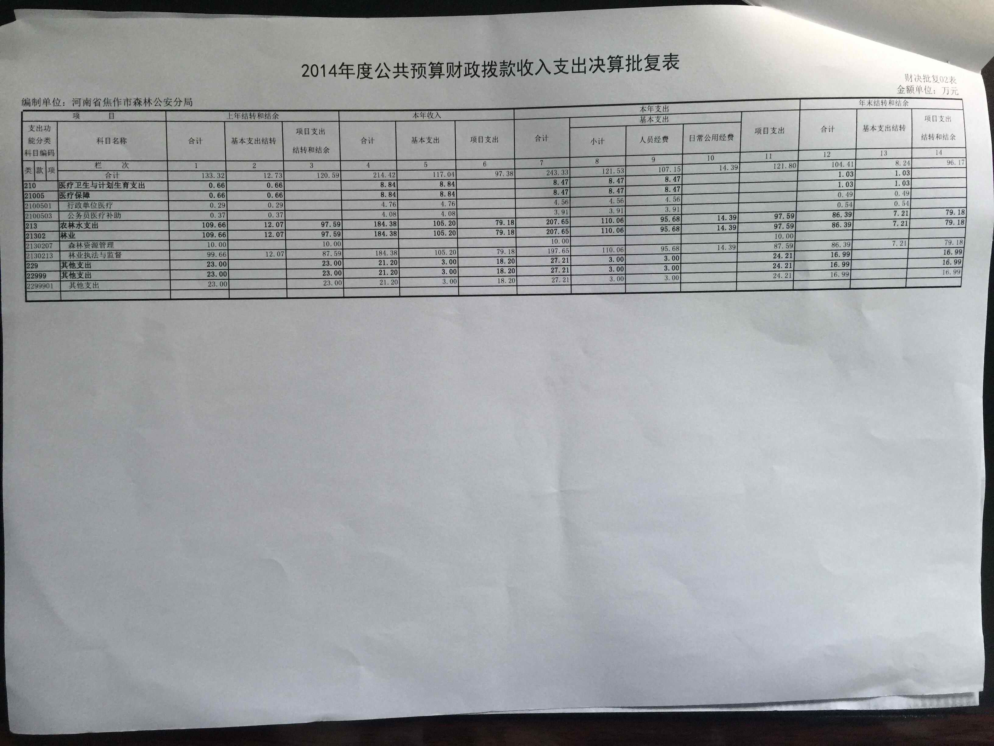 焦作市森林公安局2014年决算公开说明