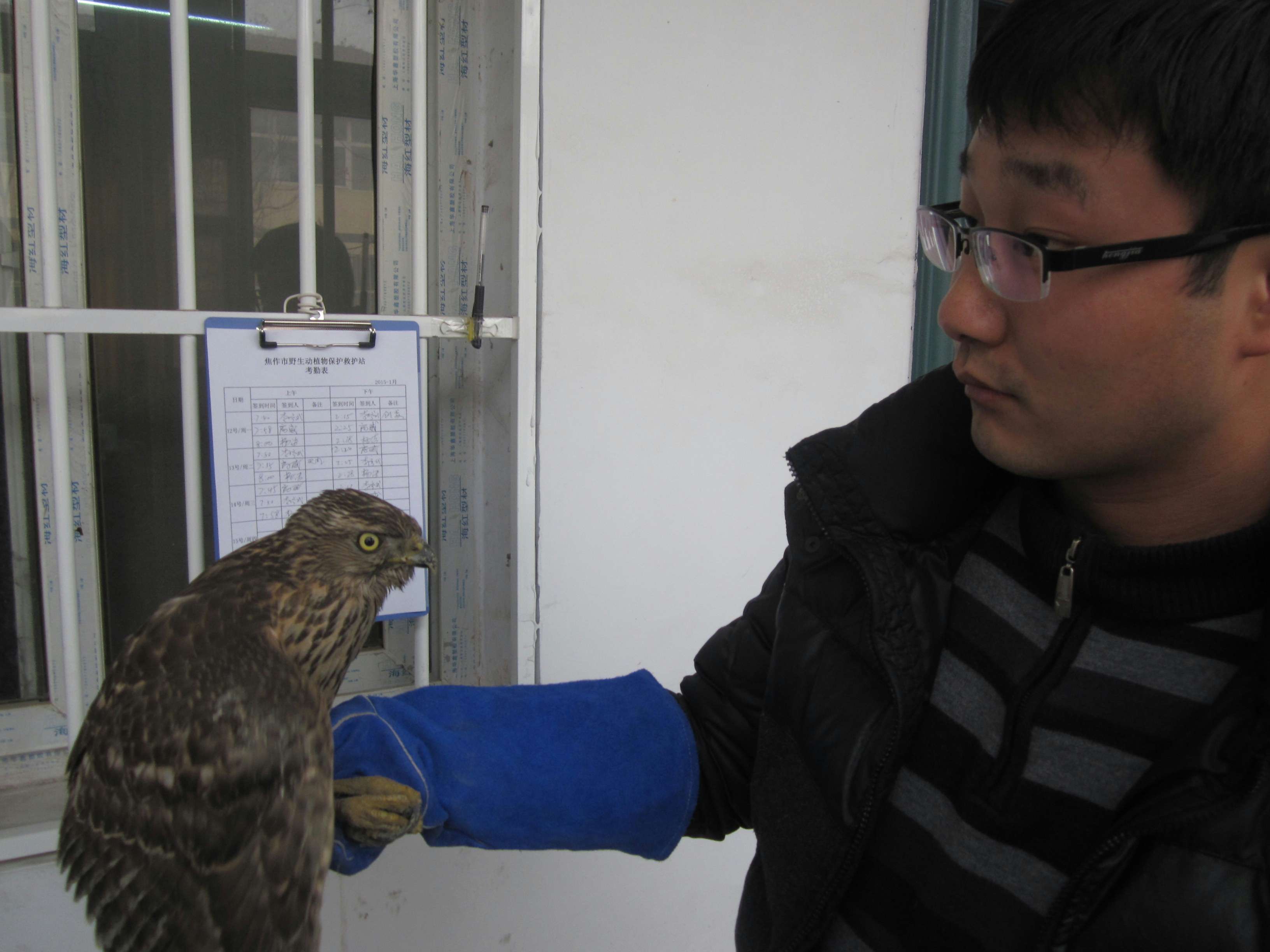 近日,bet28365365体育在线野生动植物保护站工作人员从焦作师专牛俊英老师、马熙秘、刘广伟同学手中接收一只国家二级重点野生动物--苍鹰。经初步检查,这只苍鹰并未受伤,推测为迁徙途中体力不支而落入城区,目前该鸟除体质较弱外,其它体征良好。下一步,我局将对其进行精心饲养救治,待身体在康复后,让它重回蓝天。