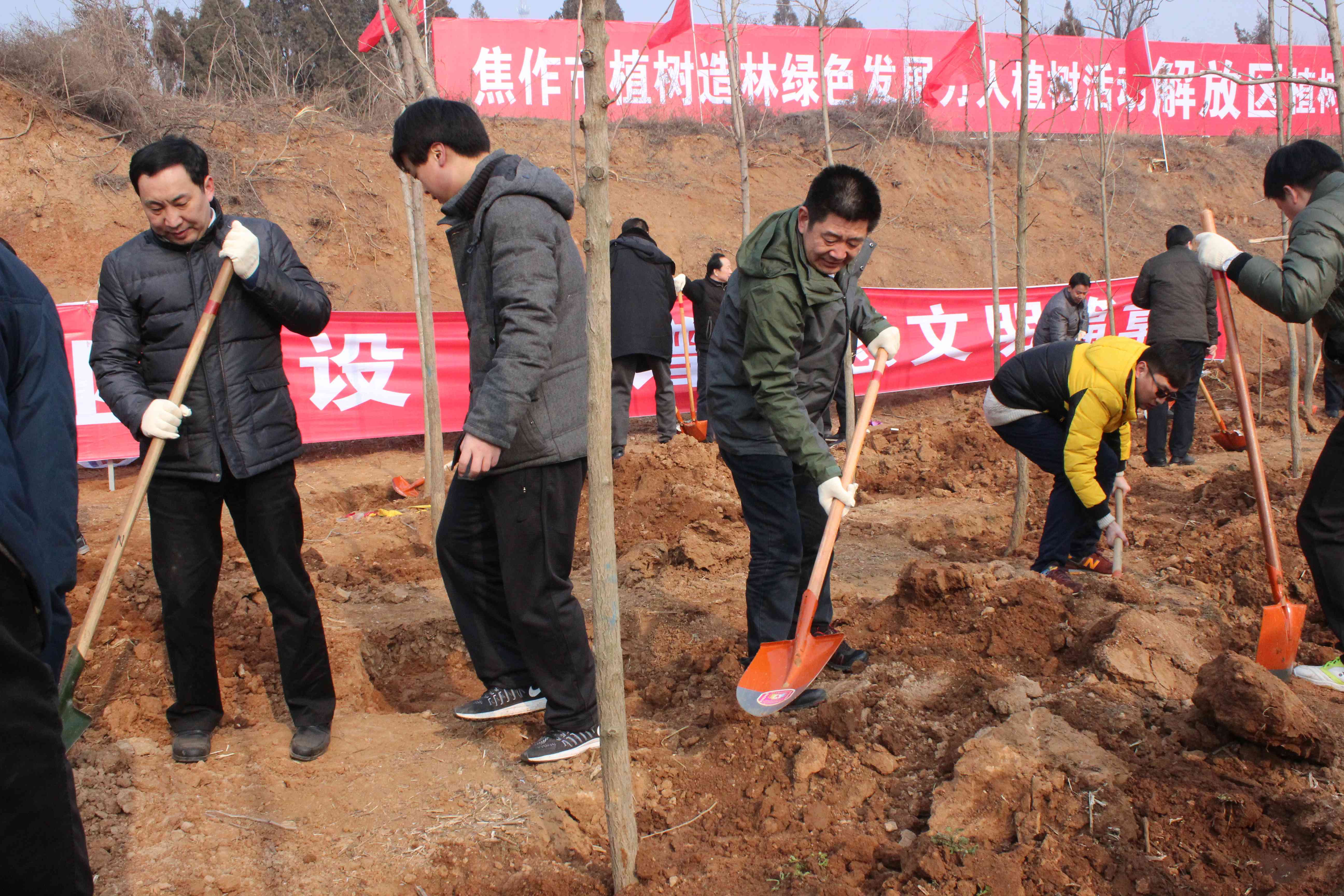 与市五大班子领导一起参加植树活动的还有焦作军分区的官兵以及团市委、市妇联、市林业局、解放区的干部群众。