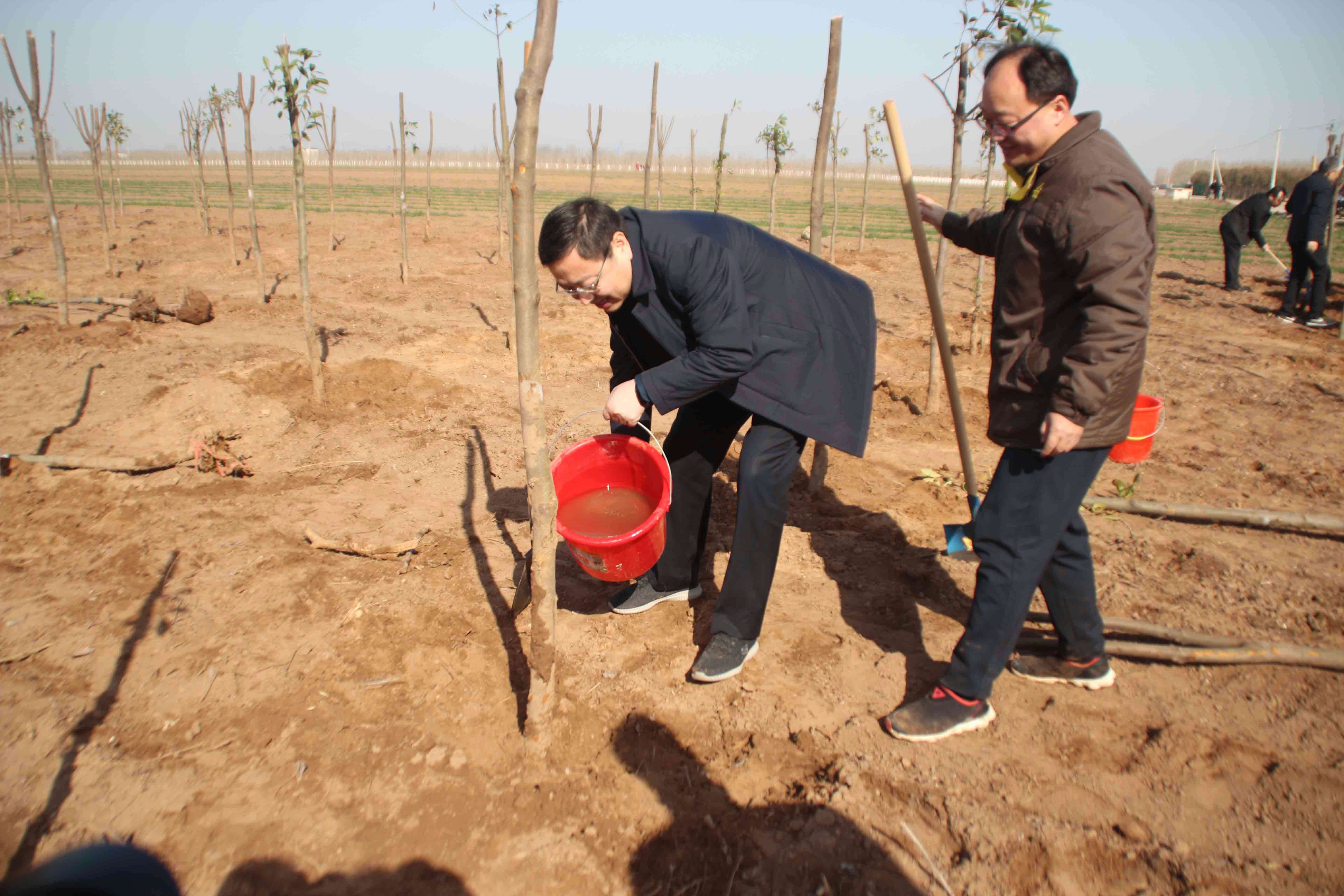 迎着明媚的春光,县领导和同志们拉线、扶苗、培土、扶正、踩实、浇水,一丝不苟的栽植着一棵棵新树。每栽一颗树苗,都要仔细看栽的是否标准。县委书记、县长秦迎军边植树,边了解树苗的品种、来源及生长习性,并详细询问林权是否落实、栽后管护是否到位等情况,县林业局领导一一详细作了回答,他高兴地对大家说,植树造林是一项功在当代、利在千秋、造福人民的大事,开展义务植树不仅能改善环境,还可以增加收入,创造财富,他希望社会各界都要重视起来,要把义务植树活动深入持久的开展下去,为武陟的绿色发展贡献一份力量。