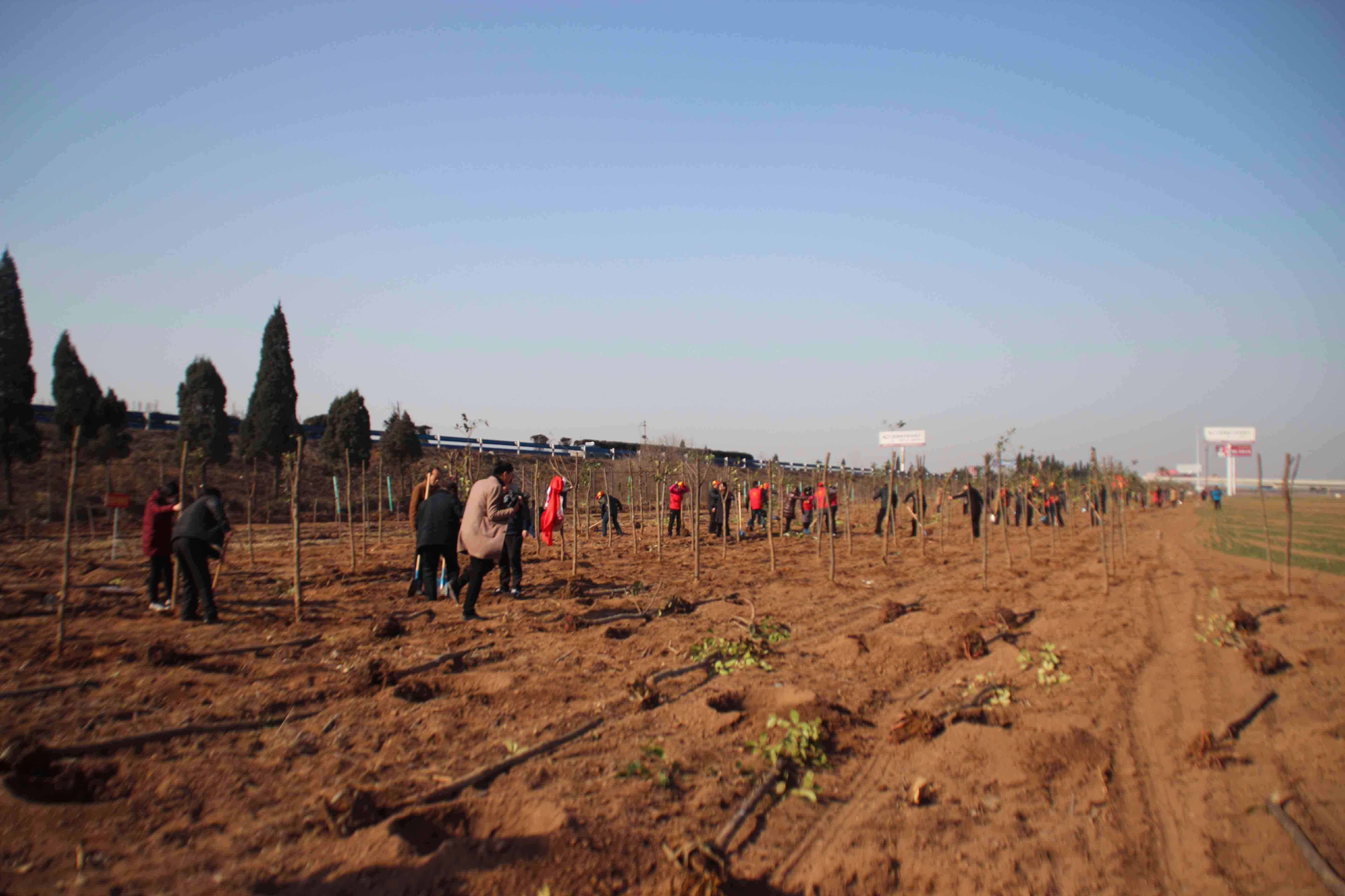 与此同时,木城办事处在东关大堤西侧;木栾办事处在郑焦晋高速路后牛段南侧;龙泉办事处在西小庄村东;龙源办事处在G327常庄段;三阳乡在郑焦晋高速后刘庄段北侧;小董乡在南渠线东段;西陶镇在陶村张阳路两侧;大封镇在保安庄至新孟路出村路;大虹桥乡在彭庄村西地;北郭乡在解封进滩路南段;嘉应观乡在二铺营村大堤南侧;乔庙乡在G327陈村段;圪垱店乡在G327小刘庄段东侧;詹店镇在李庄大堤南侧;谢旗营镇在王道村北组织乡镇、办事处干部职工、村街干部和相关林农、群众近2000人,种植红叶石楠、女贞、红叶李、国槐、杨树等2.2万余棵,在春节上班第一天,以身先力行的行动,别开生面的方式,拉起了"践行绿色发展 建设美丽焦作"建设生态武陟的序幕。